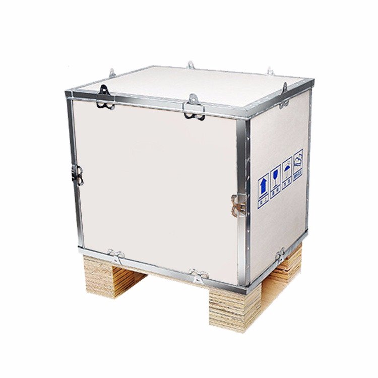 钢带木箱又名:快装箱,钢边箱,扣件箱,折叠箱,无钉箱,出口包装箱,胶合板包装箱等。产品具有连接可靠、外形美观、可重复使用、轻量化、便于装卸等一系列优点,钢带箱在国外被广泛使用,常用于出口产品的包装。 钢带箱是由六面组合式,指通过钢边和胶合板的压合形成包装箱的六个面,其中顶盖和底面采用全围钢边结构,其他四面采用钢边和舌型扣结构。组装时先把立的四面和底插接在一起,之后合盖。